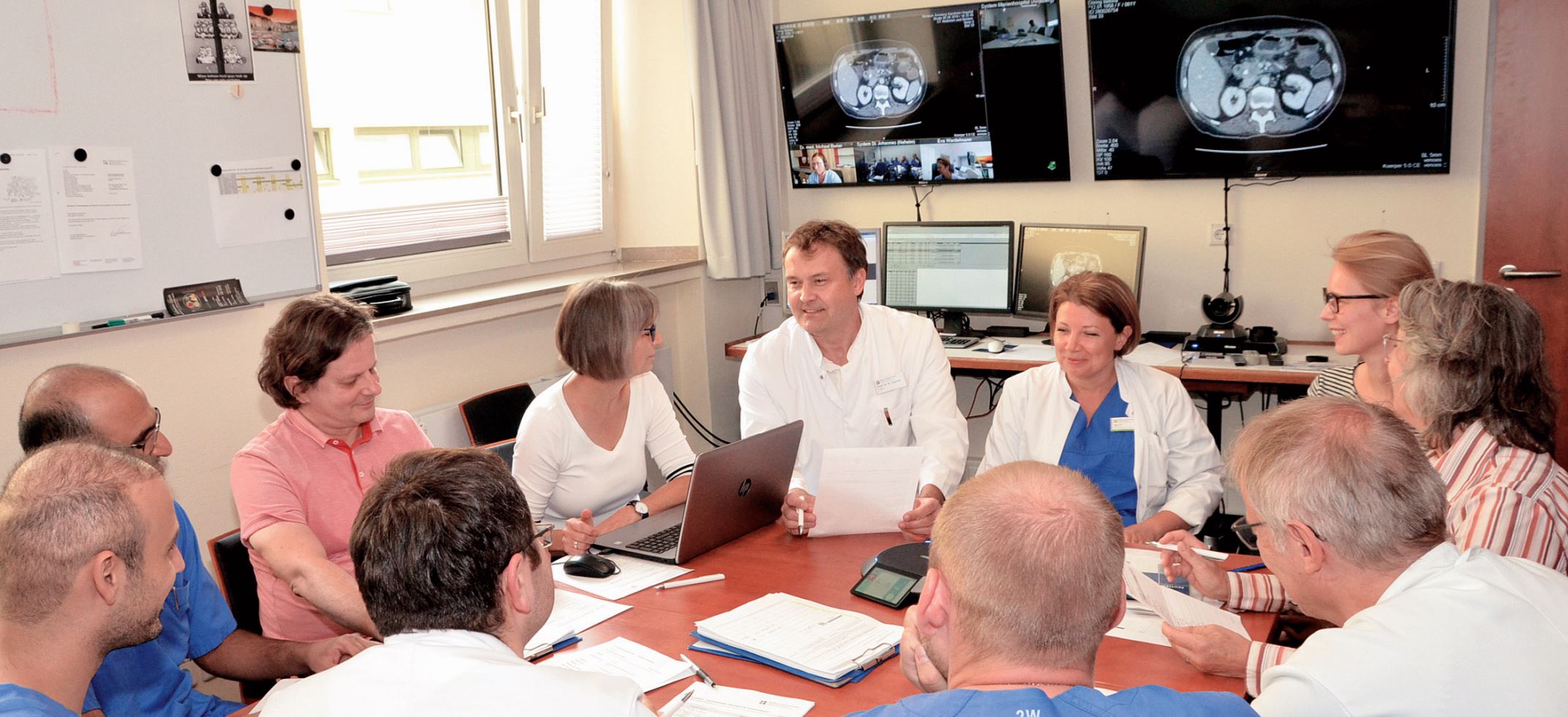Links: Annemarie Molitor ist eine von 100 ausgebildeten Onko- Lotsen in Deutschland. Oben: Damit sie auf jeden Krebspatienten bestmöglich vorbereitet ist, nimmt die Onko-Lotsin regelmäßig an den klinikinternen Tumorkonferenzen teil. Rechts: Zum Klinikverbund Hochsauerland gehören das Karolinen-, St. Johannes- und Marien-Hospital sowie das St. Walburga-Krankenhaus.