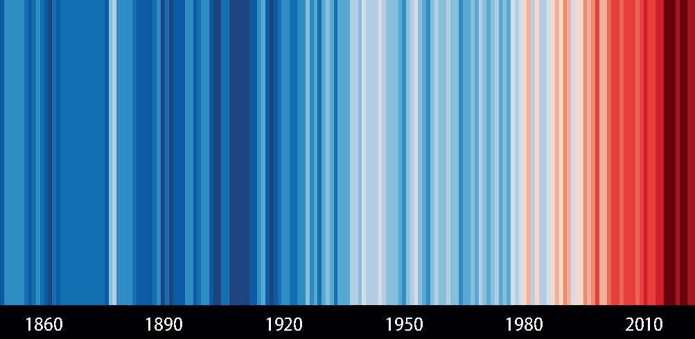 "Warming stripes" visualisieren die Erderwärmung über einen Zeitraum von über 150 Jahren.