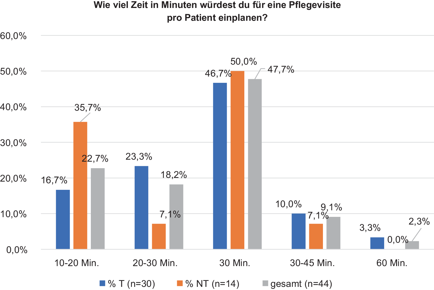 Zeitrahmen für eine Pflegevisite. T Teilnahme an einer Pflegevisite, NT keine Teilnahme an einer Pflegevisite