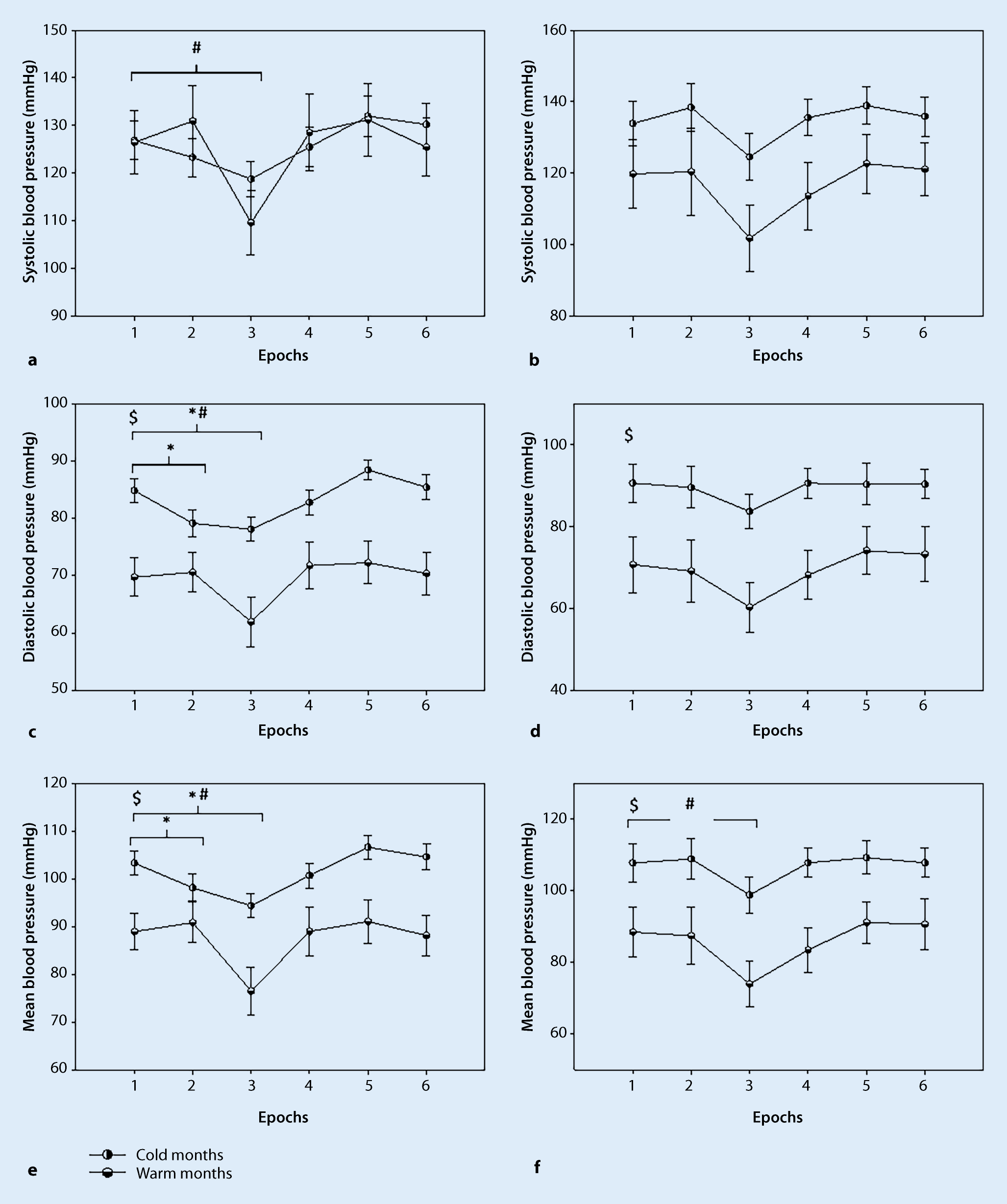 It is well known that blood pressure is elevated in winter compared to summer [1, 9]. Specifically, systolic blood pressure decreases with increasing temperature and the exposure temperature has been reported to influence the autonomic nervous system [25]. Orthostasis means upright standing, which induces redistribution of blood to the lower body (by gravitational force) and blood pressure reduction. The reduction in blood pressure during standing is more pronounced in warmer seasons as a result of the effects of higher ambient temperature, hypovolemia (increased sweating, salt and fluid loss), and peripheral vasodilatation [38]. The sympathetic nervous system reacts by increasing heart rate and cardiac contractility thus preventing a collapse of the systemic blood pressure and cerebral perfusion [32].
