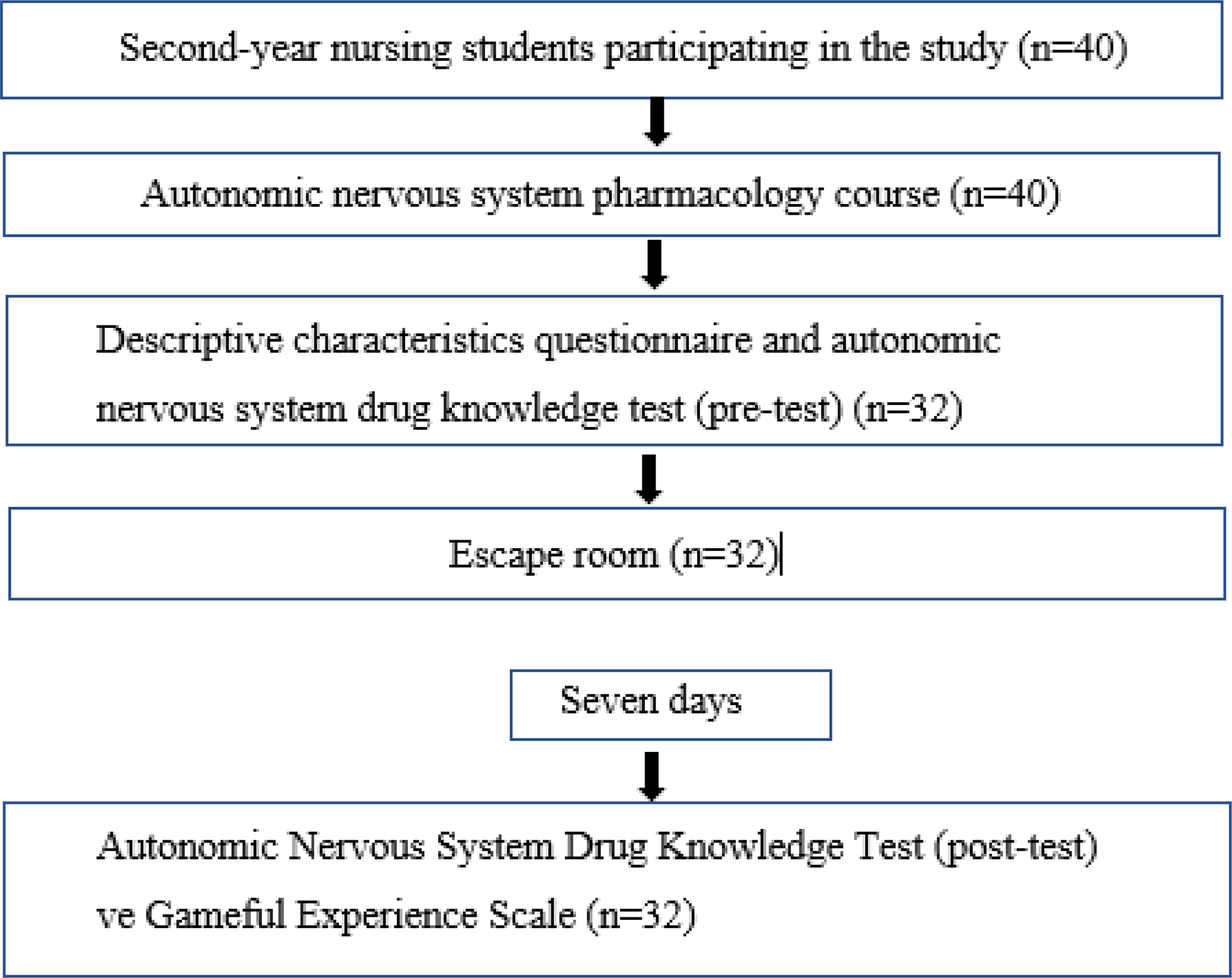 This study was conducted to evaluate the effect of an educational escape room on nursing students’ knowledge of autonomic nervous system pharmacology and their game experiences. To this end, the study addressed the following research questions: