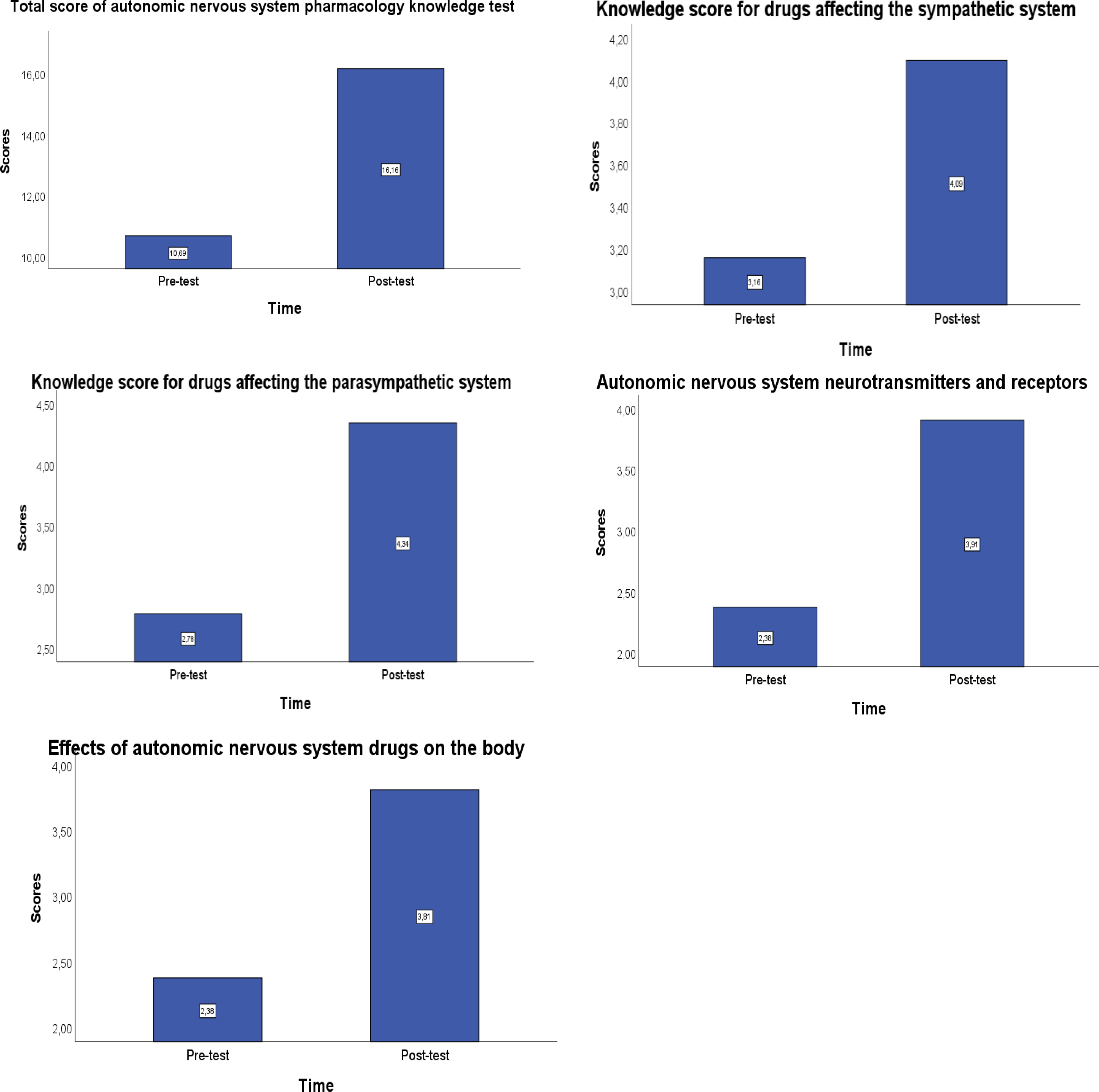 Comparison of students’ autonomic nervous system pharmacology knowledge test pre-test and post-test scores